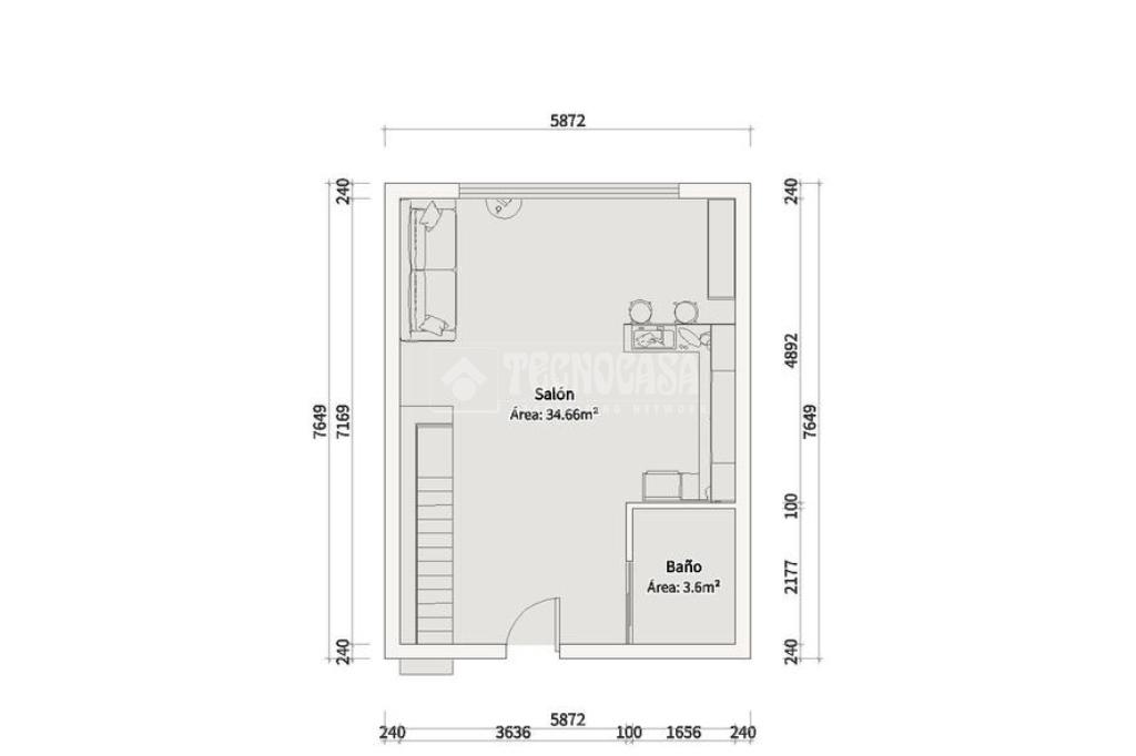 En la primera planta encontramos un amplio y luminoso salón con cocina americana, diseñado para aprovechar al máximo el espacio, con una gran ventana que aporta abundante luz natural durante todo el día. En esta misma planta se ubica un baño completo.